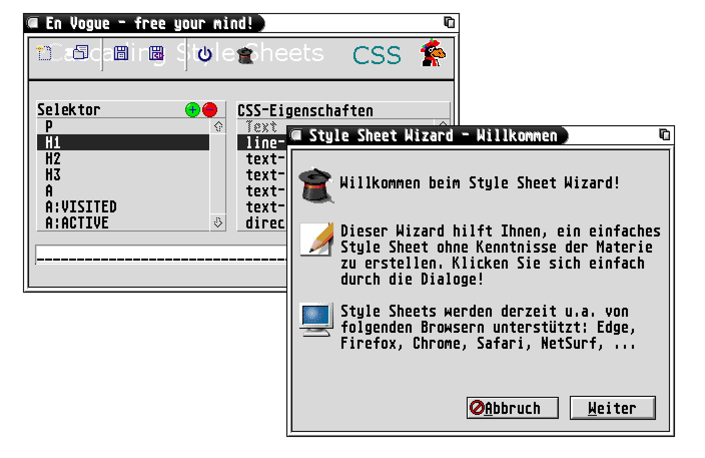 HTML-Help is a utility for HTML files on the Atari ST/TT/Falcon. First released in 1996 together with the HomePage Penguin, it offers various tools to convert special characters, change file formats and many more.