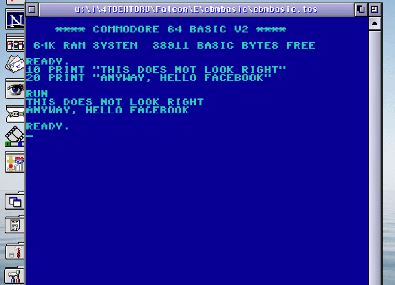 "cbmbasic, a portable version of Commodore's version of Microsoft BASIC 6502 as found on the Commodore 64" - this is a reimplementation of the Commodore Basic V2, usable via a command line interpreter or in interactive mode (including the famous start text). Without any form of emulation or even simulation of the original hardware, use cases are fairly limited. The archive only contains the Atari makefile which is basically the unix makefile with a prefix added for the cross compiler.
