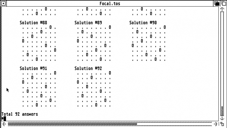 This is the Atari ST port of the Focal programming language. This version of Focal was basically written in 1981 for the then-famous PDP-8 machines. The source was designed to run on Unix, VMS and VAX (the machine that was used to design the first ST's!). Focal-81 is very portabel - I didn't have to modify the sources for the ST.